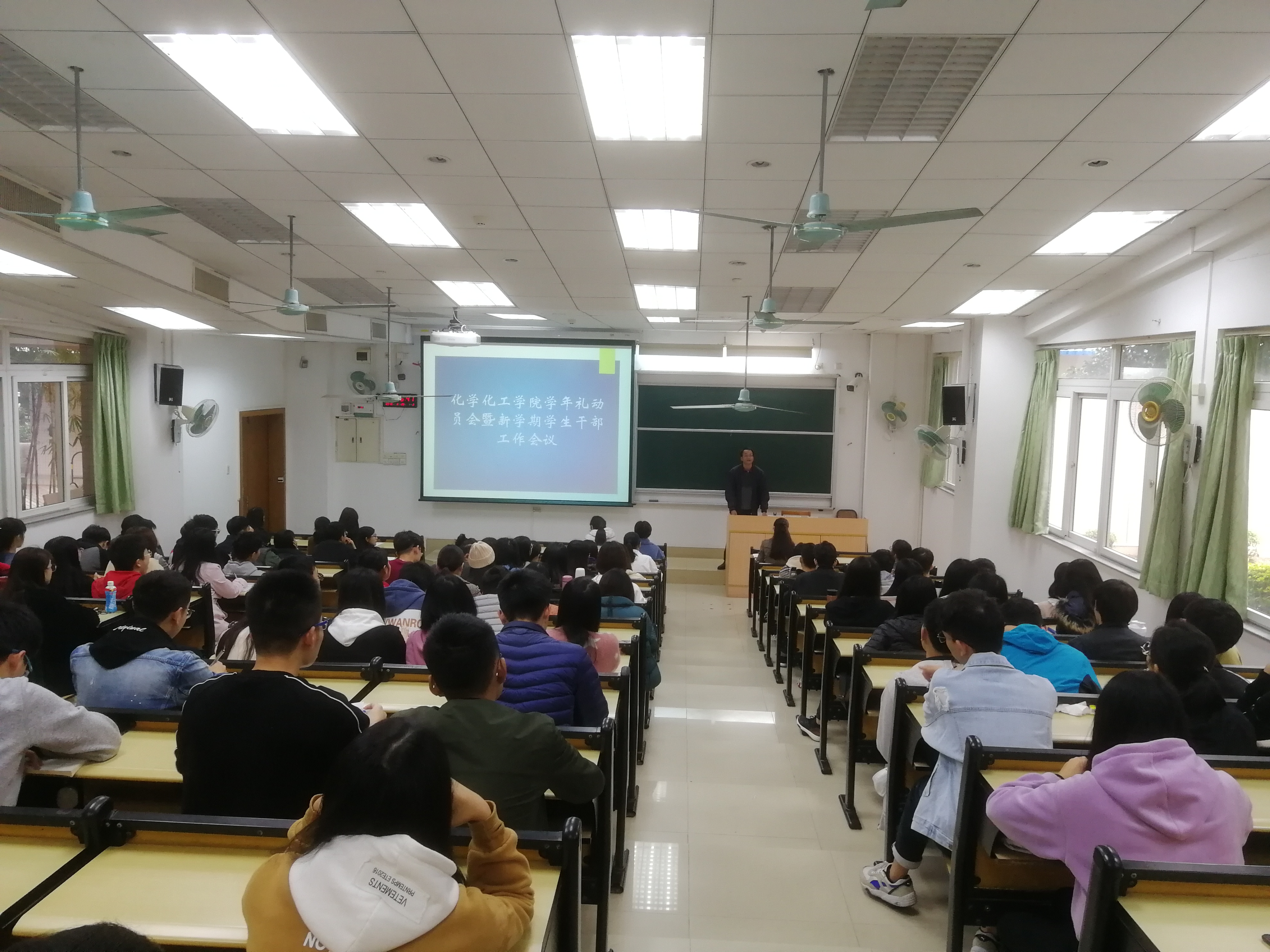 在文清107召开新学期学生干部会议暨学年礼动员大会,学院党委副书记谭启亮、全体辅导员、全体党员、各年级级长、班长、团支书、团委学生会主要骨干约120人参加会议。
