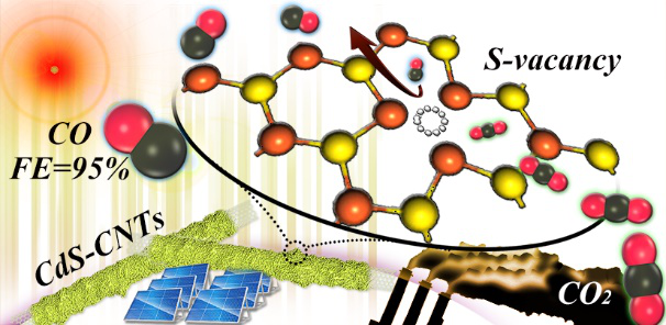 彭峰教授团队研究了一种富含S空位的新型电催化剂CdS-CNTs,在CO2电化学还原为CO的过程中,FE超过95%。利用原位红外方法研究CO2在CdS-CNTs表面的还原机理;结合DFT的计算发现,硫空位的形成改变催化剂表面的电子密度,减少反应中间体转换的能量势垒,促进CO2电化学还原为CO。该研究还在自然光照条件下,采用太阳能面板高效驱动了CO2电化学还原为CO,预示了一个有希望的应用前景。本研究为设计高活性和高选择性的电化学还原CO2催化剂提供了新的思路。彭峰教授为该论文的通讯作者,成人影院
