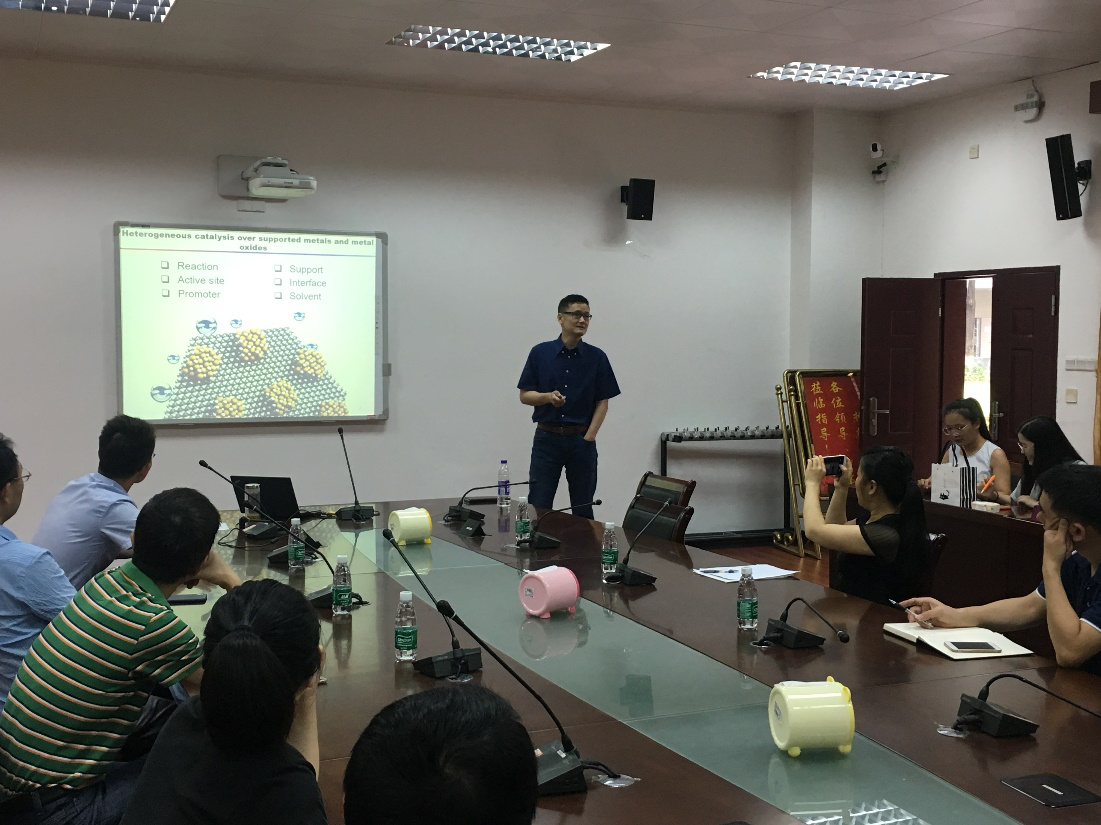 师生作了一场题为“二氧化碳甲烷化催化剂设计研究”的学术报告。杨教授主要讲述了近年来开展的二氧化碳甲烷化催化剂设计与机理研究工作,紧紧围绕表界面这一概念,多角度论证分析催化剂载体与活性组分之间的相互作用,及其对催化二氧化碳甲烷化过程的影响。