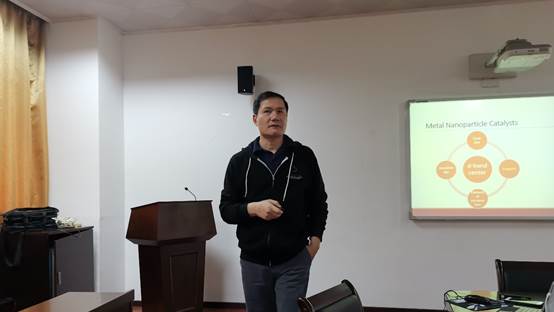 陈少伟教授的报告重点介绍了纳米颗粒界面相互作用对其电化学和催化性能影响的最新进展。通过控制纳米粒子核心表面和反应中间体之间的电子相互作用,调控纳米粒子在电化学能量转化和存储中的各种重要反应中的电催化活性。采用在贵金属Pt纳米粒子表面修饰供电子性能的有机链段方法,显著增强Pt的催化性能。陈少伟教授还耐心详尽地解答了在场老师和研究生提出的问题,开阔了大家的视野,与会师生获益匪浅。