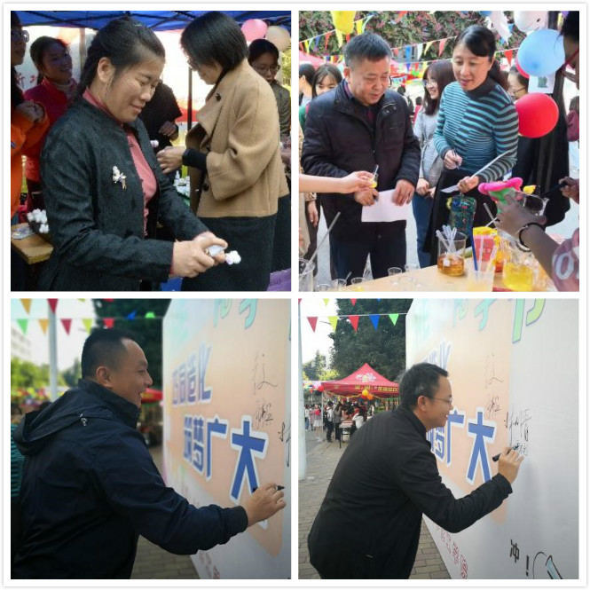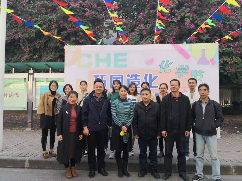 党委书记周海兵老师、院长董文教授、副院长邹汉波副教授、副书记谭启亮老师等老师也来到红棉路现场参观、指导,与同学们一起体会化学的乐趣。