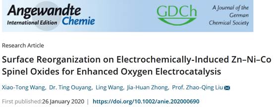刘兆清教授团队最新关于尖晶石氧催化的研究工作发表于国际化学顶级期刊《德国应用化学》。该研究提出了尖晶石型氧化物(ZnXNi1−XCo2O4)中的氧化还原惰性Zn2+的二次活化机制,以协同优化物理孔隙结构,辅助催化剂表面高活性位点的原位构筑。