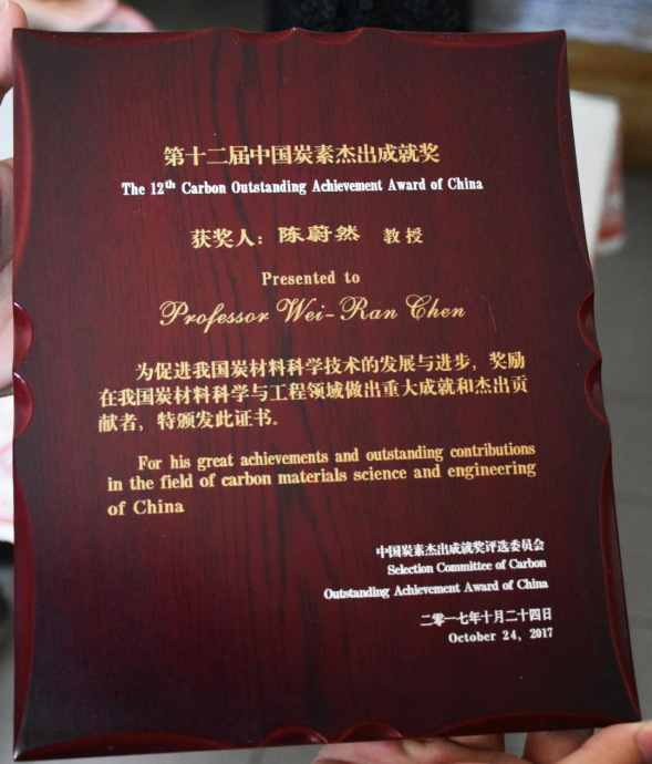 ▲陈蔚然获第十二届中国炭素杰出成就奖