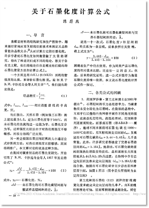 ▲陈蔚然于1983年12月27日发表《关于石墨化度计算公式》