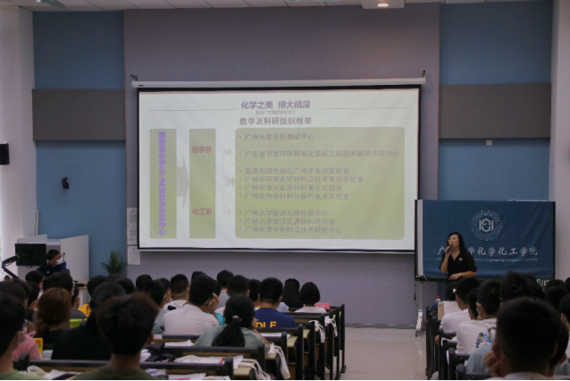 师资教研力量、学科建设平台优势,以人才培养目标为切入点,深刻剖析了我国面临的科技窘境以及化学、化工学科的重要性。鼓励同学们要树立远大的理想,并期待同学们能将自己的奋斗根植于祖国的大地,努力把自己锻造成为未来发展的“国之大器”的美好祝愿。
