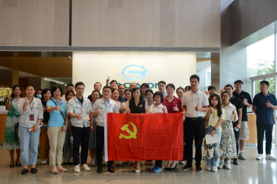 行政党支部全体党员、分析技术中心党支部部分党员代表、体育学院行政党支部全体成员以及部分学生党员代表参加了本次联合党日活动。活动以“感悟奋斗青春 校企共赢未来”为主题,一行25人分别参观文化古镇村落大岭村、参观广汽埃安智慧生态工厂以及校企座谈。