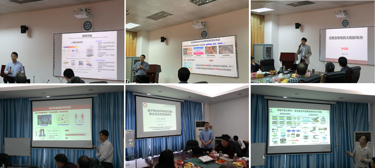 教师韩成功、孙会靓等分别作了关于“面向高端仪器分析技术的光学测量基础与器件集成”、“软界面电分析化学”、“全聚合物有机太阳能电池”,“高性能离子热电凝胶”、“基于聚合物材料的高灵敏电化学生物传感”以及“触觉传感器的微观结构调控与宏观设计”的学术报告。与会专家对报告进行了细致的指导与点评,反响热烈。