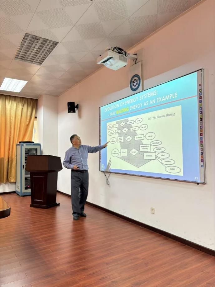 李献国院士以“能源:从过去到未来”为主题,深入浅出地阐述了“Energy”的起源、发展等。他从古代的柴薪能源讲起,逐步过渡到工业革命后的煤炭、石油和天然气,再到如今蓬勃发展的可再生能源,详细梳理了能源在人类社会发展中的关键作用和演变历程。李院士的报告内容丰富、见解独到,激情满满,引发了在场师生的浓厚兴趣。