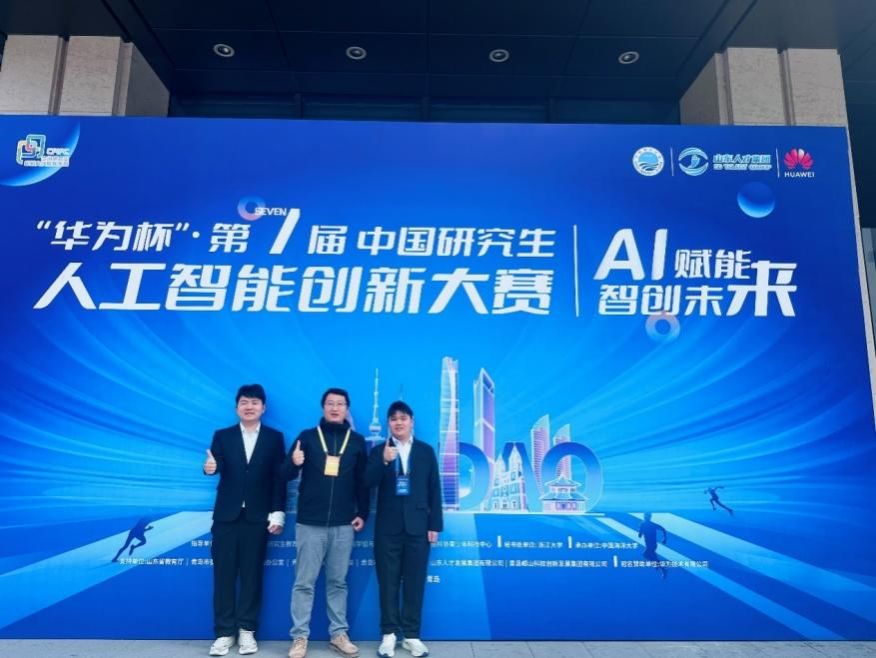 中国研究生人工智能创新大赛决赛答辩后合影 张知科(左)、乔智威(中)、吴浩凡(右)