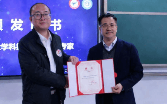 科技辅导团校外指导专家。学院党委副书记李红宾老师为黄老师颁发聘书,台下掌声雷动,见证这一联结校地教育资源的重要时刻。一纸聘书,既是对黄柏树老师在 STEM 教育、科技辅导领域卓越成就的高度认可,更是一份传承教育薪火、共育未来教师的郑重约定,为师范生的专业成长注入了强劲动力。